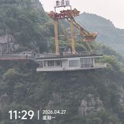 1、 潭溪山玻璃桥:无背索斜拉弧形玻璃桥