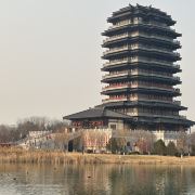 海岱楼位于山东省淄博市张店区北京路以西,中润大道以南。海岱楼建于齐盛湖公园的齐盛湖上,是一个以图书为主题的楼阁建筑,一座集文化、观光于一体的地标性建筑。其设计灵感源自齐鲁文化,建筑风格独特。登顶后可俯瞰淄博市全景,尤其在晴朗的日子里,视野开阔,令人心旷神怡。