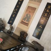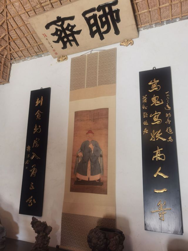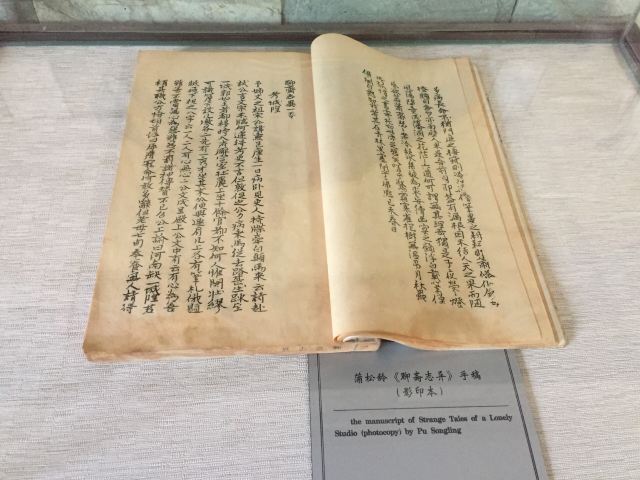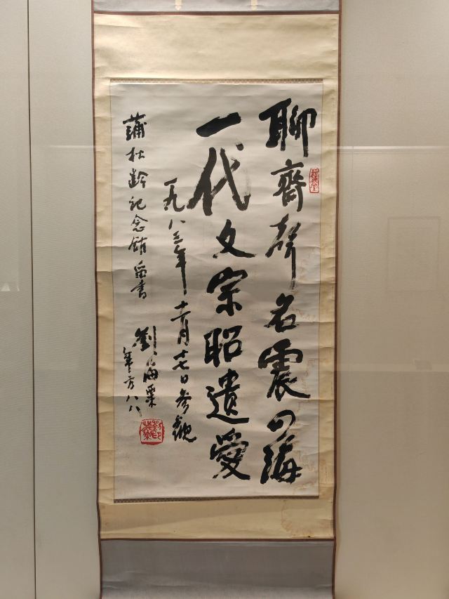 在聊斋正房的后面,有6间书画展室。展室里陈列出了中外蒲氏研究家的多种论著,以及当代名人书画家为故居所作的书画和题词,这些书画都体现了后人对蒲松龄先生的景仰之情以及《聊斋志异》对后世的深远影响。