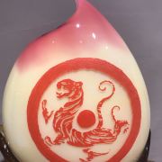5分 超棒博山琉璃金龙鱼,玻璃在明代以前称为琉璃,明晚期又称为料器,是中国明清时期较为时尚的工艺品。琉璃工艺品一直是民间作坊在制作,清代康熙中期玻璃制造工艺第一次引进了皇宫中,套料工艺也是在这个时期出现的。