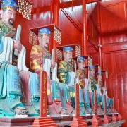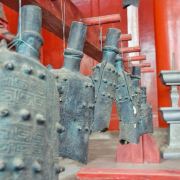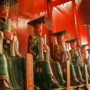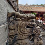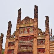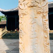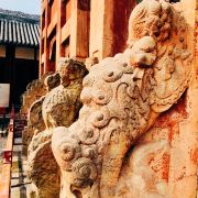再说文庙,县衙文庙交界处是富顺文保所,地上摆满出土文物,可以鉴赏下川南不俗的四兽石刻。文庙各地都一样,富顺独特的是状元桥,一般桥是龙身作护栏,富顺是龙身在桥板,以龙游形象,不设护栏,展现读书人鲤跃龙门的高大上。还值得一提的是“九龙丹陛”,通俗点就是大成殿门口九龙缠绕的地上浮雕,因为封建社会拜孔子为师,所以孔庙可享受他们一样的待遇,类似故宫乾清宫门口的九龙壁。文庙最里面的“敬一亭”据说有吴道子所绘的孔子坐像阴刻图,不过观感一般。