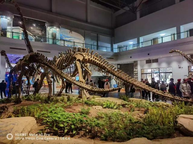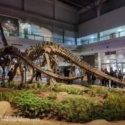 博物馆有两层,一楼摆有18具恐龙骨架,硕大无比,十分震撼。在恐龙遗址厅可以看到数以千计的化石首尾相接,排布有序,令人眼花缭乱,叹为观止。二楼可以去看看“恐龙再现”展厅,这里用声光电模拟出恐龙当年生活的场景,非常真实。