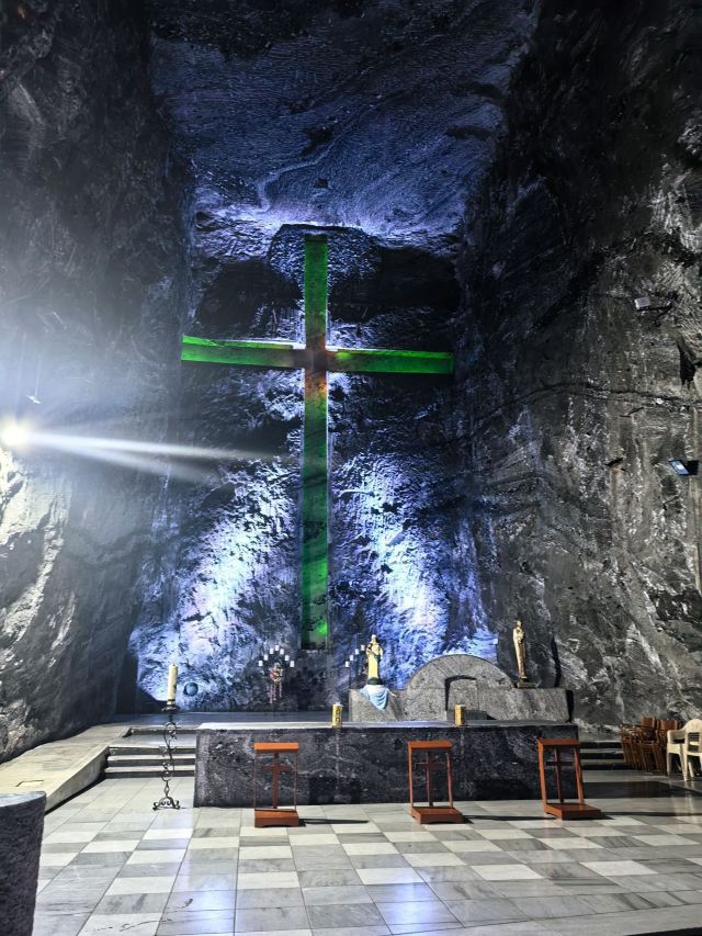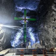 锡帕基拉盐矿大教堂是一座地下罗马天主教堂,建在哥伦比亚昆迪纳马卡市附近的一座盐矿山地下200米的盐矿隧道内。它是该国的旅游胜地和朝圣地。底部的圣殿分为三个部分,分别代表耶稣的诞生,生与死。图标,装饰品和建筑细节都是在石盐岩石上手工雕刻的。包括一些大理石雕塑。