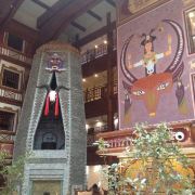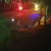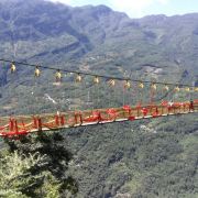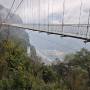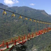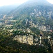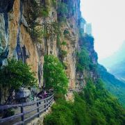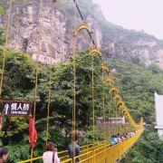4.景色:一到山门就是一副巨型悟空像,我照片有,在半山岩壁上,非常巨大,很拉风吸引眼球;进去后坐缆车上山,半山腰是碉楼和大桥;然后就是核心景点猿王洞了,在桥上一看,一张巨口张开在对面山壁上,灰常壮观,走近看更是不得了,里面是西南常见的喀斯特熔岩地形,很值得一看,有不少拍照的好地方;出来之后还可以坐滑索,两山飞渡。
