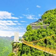 🚩【具体线路】依次是前山情人桥、高空滑索、玻璃桥、猿王洞部分————绝壁栈道2.5㎞,直接可以上到山顶养野猪的地方————然后可以乘观光车去云中农场网红打卡地,划水,星空露营地看日出都在这里————玩完右边山顶,乘观光车返回,依次左走分别是玻璃栈道和玻璃观景台,往上依次有碉堡和第一天梯,天神殿。这个时候一早进山的应该也快晚上了