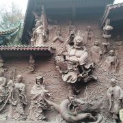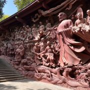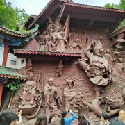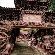 - 雕塑艺术:寺内的“吉祥门”雕塑艺术长廊是一大亮点,长达200米,出自四川民间艺术家李能胜之手。长廊依山而建,以佛教文化和吉祥文化为综合体,塑造了东方琉璃世界和西方极乐世界的佛教圣境,济公、各路菩萨、尊者、达摩祖师等雕塑栩栩如生,将中国佛教高深的文化内涵生动形象地展现在世人面前。