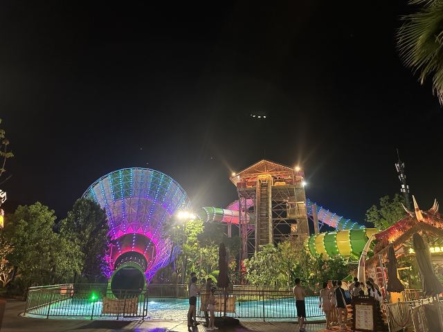 1️⃣ 清凉玩法多:恒温浪池、七彩滑道、水枪大战、电音派对…全天嗨玩不重样!