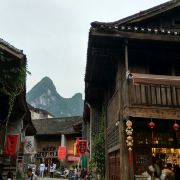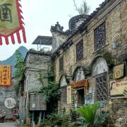 兴坪古镇位于阳朔北部漓江江畔,是一座拥有一千七百多年历史的古镇。如今古镇内仍存有古街、古桥、古戏台、古庙等景物。古镇江边有竹筏漂流的码头,可以坐船前往“漓江风景区-黄布倒影”景观,这里也是二十元人民币背面图案的取景地。