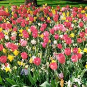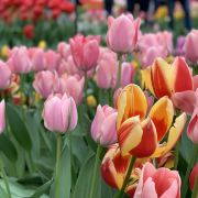 • 欣赏颜色各异的100余种、共450万株的郁金香,以及其它近300万株的球茎花卉