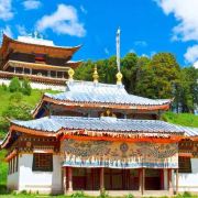 格尔底寺院全称达仓纳摩格尔底寺,位于若尔盖县,紧靠郎木寺镇,是郎木寺镇上的两座知名寺院之一,下辖18座分寺,是四川阿坝地区规模既大还很有影响力的格鲁派寺院。达仓纳摩藏语意为虎穴仙女。”虎穴仙女“是郎木寺镇一处有名的景观,位于白龙江源头的溶洞里,相传内有一只猛虎,是当年莲花生大师来此降妖伏魔时驯服后,使猛虎幻化成仙女。溶洞的较高处有一座颇似女神的钟乳石,当地藏民视为神灵,经常前来磕头跪拜,祈求平安。格尔底寺院在藏区声名远播,因为寺内供奉着该寺第五世格尔底活佛的肉身灵塔。五世格尔底活佛出生于1681年,于1775年圆寂。其肉身灵塔供奉在山顶上一座小院里,外表十分平淡,就象一户普通民居的院落。院门口有人顶礼膜拜,院里也有很多人在转经。