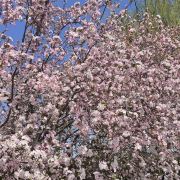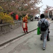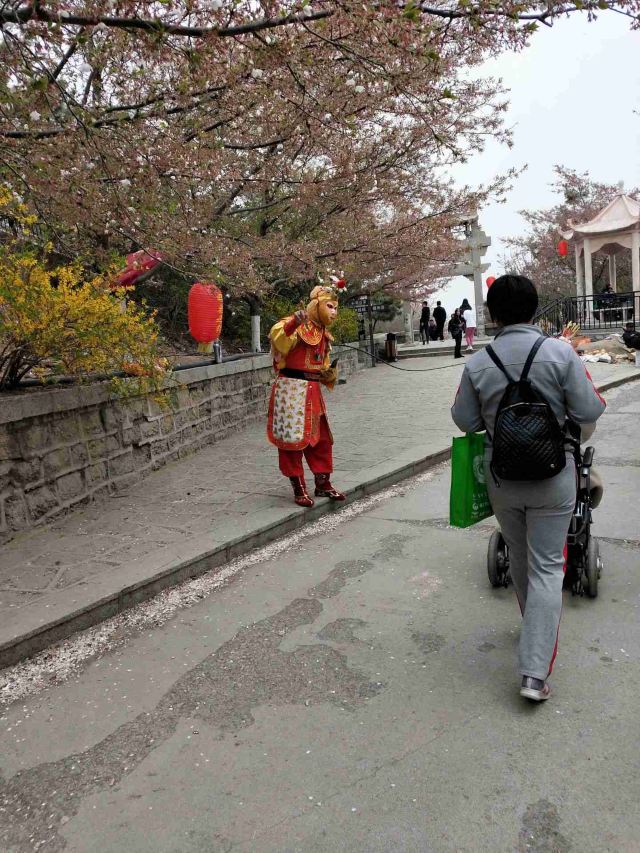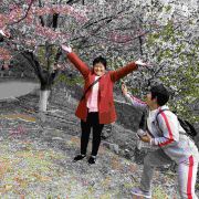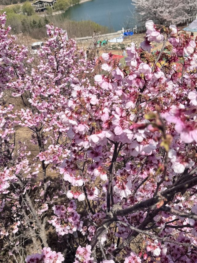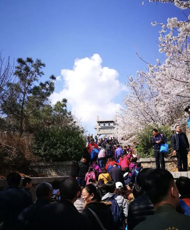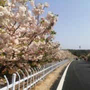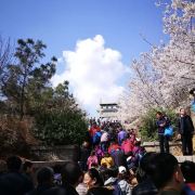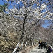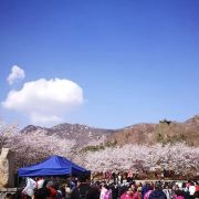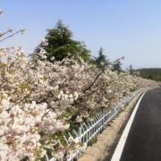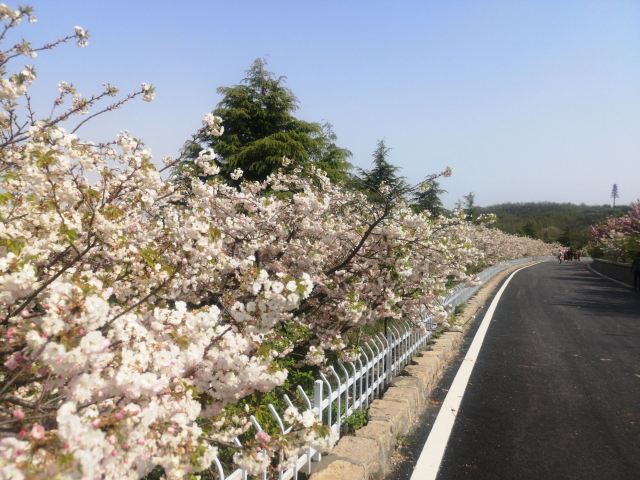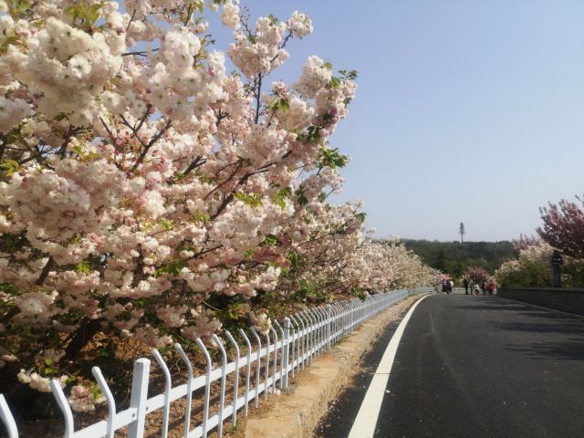 樱花山风景区尤以万株樱花令人惊艳,先盛开的是早樱“染井吉野”,沿着十里樱花路蜿蜒而上,只见两边樱花次第盛开,繁花满树,洁白如雪,热情奔放;放眼眺望,远山含黛,烟花灿灿,一片片粉白、粉红的樱花如水墨画般渲染山间,如梦似幻,此情此景,仿如进入人间仙境,有不知今夕是何夕之感。从三月底开始,早樱、晚樱相继开放,一直持续到4月底,当晚樱盛开之时,已是早樱落英缤纷之际,阵阵清风吹过,片片落英如雪花般随风飘落,纵然你不是一个多愁善感的文人游客,也会被眼前这唯美的景象感染,借景抒怀。而与这边落英不同的是晚樱正开得饱满而秀美,红如霞,白如玉,层层叠叠的花瓣组成了晚樱隆重的盛宴,让人刹那间感受到春天的温暖和惬意。