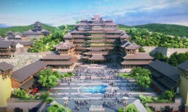所以这个古城没有完全建完 晚上古城也没有亮灯
