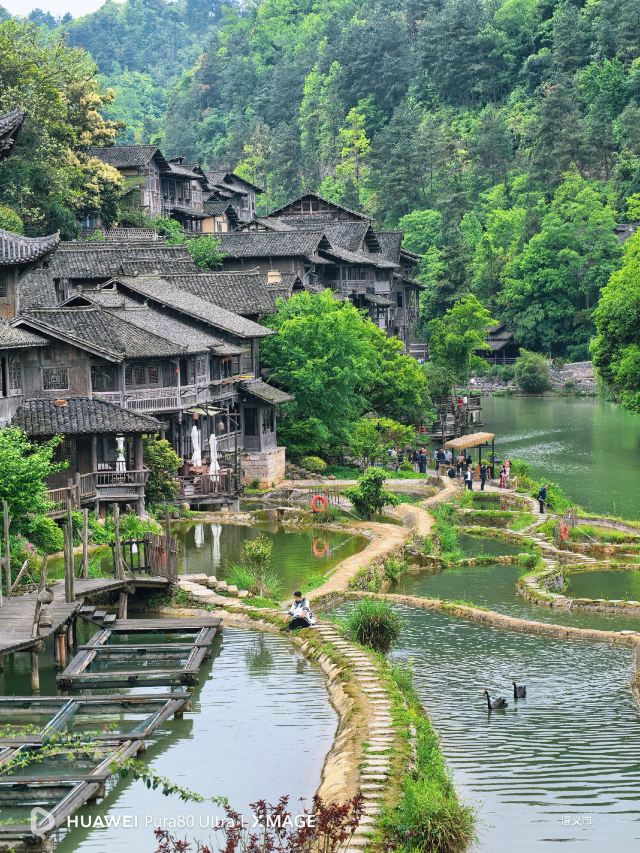 景区大小景点27 处,景观如水上栈道、廻龙塔;红色文化如红军亭;在地文化如陈公祠、陶艺街、和平染坊;更有为川盐入黔出力的茶马古道……一步一景,捡拾寨里记忆。