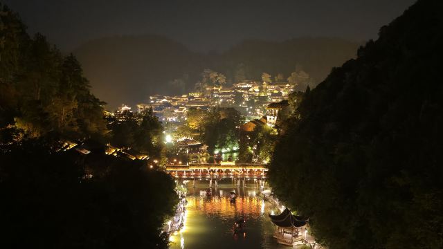 日游摇橹,夜赏千灯。景区背倚青山,临水而居,自然风光和黔北民俗风情交相辉映,宛若世外桃源一般。白日里青山远黛,绿水含烟,依山傍水如同水墨画卷,夜幕降临,又仿佛坠入了千与千寻的梦幻世界,千家灯火渐次亮起,长长的廊桥流光溢彩,像一条光带连接两岸,站在廊桥上远眺,乌江两岸华灯璀璨,美不胜收……被誉为“贵州夜景天花板”。