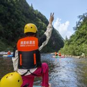清溪峡漂流河道是由清溪河、塘村河、太白河、蛇溪河四条山间溪流融汇形成,最终流入清溪湖。河道两侧忽而悬崖峭壁如刀削斧劈,忽而奇峰怪石侧面耸立,飞瀑穿行其间,水帘洞若隐若现。数十公里美景体验,32处郎艳风光,漂流河段上,分布着32个美景激流,一波还未平息,一波又来崛起,乘风破浪之间,体验漂流乐趣。