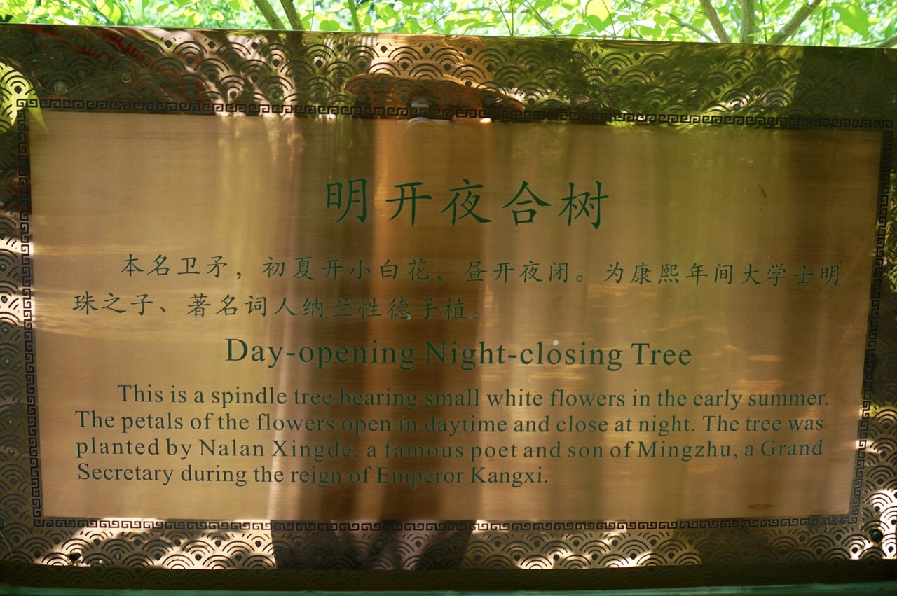 现在的宋庆龄故居,曾是清朝康熙年间大学士明珠的府邸,纳兰明珠之子纳兰性德在此出生,两株夜合欢,是性德亲手所栽,是他的心爱之物。