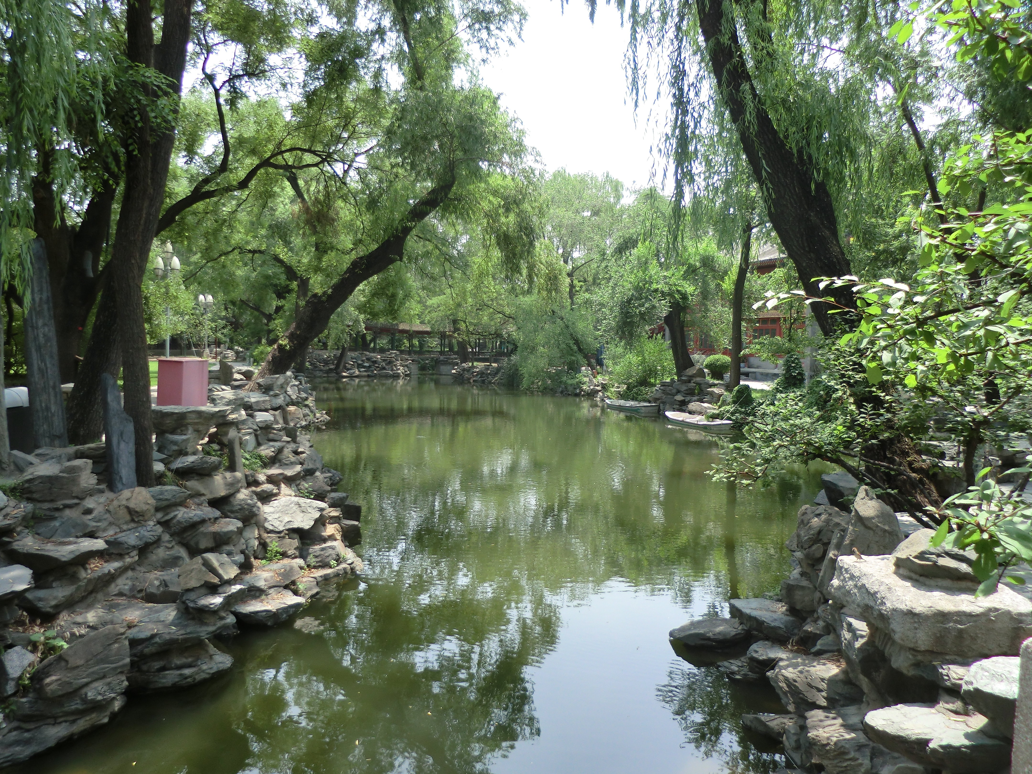 北京宋庆龄故居院子的面积不大,长宽大约都有150米左右,进入院内后步行即可。整个院子由后海引入的活水围绕,在院内后南湖、后湖两个比较大的水面。主要建筑则位于类似湖心岛的水流中心处。