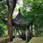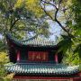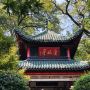 爱晚亭,位于湖南省岳麓山下清风峡中,始建于1792年,名字来源于杜牧的七言绝句《山行》。与陶然亭、湖心亭、醉翁亭并称中国四大名亭,是革命活动胜地,为省级文物保护单位。亭形为重檐八柱,琉璃碧瓦,亭角飞翘,自远处观之似凌空欲飞状。内为丹漆园柱,外檐四石柱为花岗岩,亭中彩绘藻井,东西两面亭棂悬以红底鎏金“爱晚亭”,是由当时的湖南大学校长李达专函请毛泽东所书手迹而制。