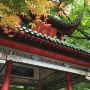 爱晚亭古朴典雅,亭坐西向东,三面环山。爱晚亭内为丹漆圆柱,外檐四石柱为花岗岩,加之配以东西两面亭棂所悬的红底鎏金“爱晚亭”匾额,令亭子有现代意味。