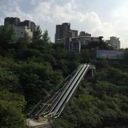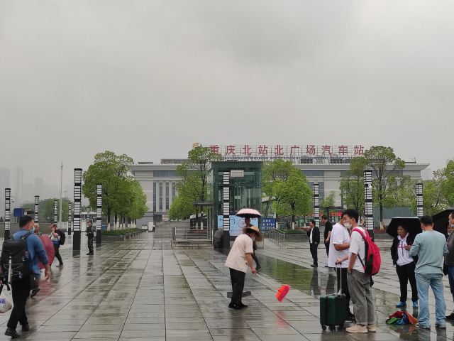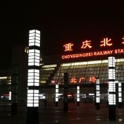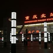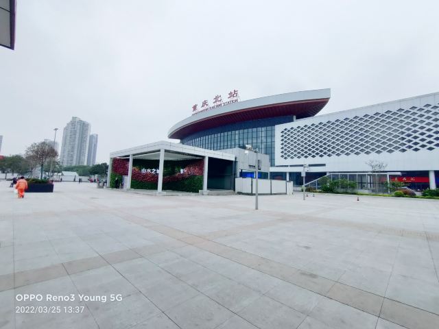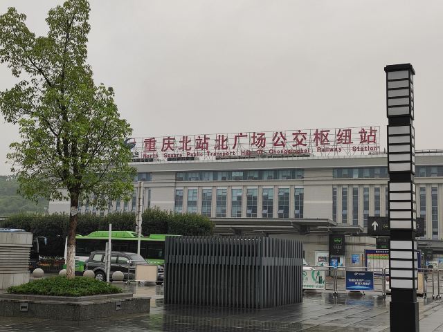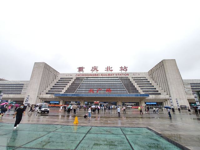 重庆北站,俗称龙头寺站,位于重庆渝北区,2006年10月22日正式投入运营。重庆北站有南北两个广场,其中北广场于2015年1月1日正式开始运行,主要负责城际铁路和高速铁路运输。南站房主体两层,由玻璃幕墙和浅色材料装饰的外观呈银灰色;北广场由地上一层和地下5层构成,平层为集散厅、候车厅、售票大厅;负1层 列车停靠站台、出租车站台、长途候车厅、北售票厅;负2层为社会车停车场及配套,现暂时作为出租车停靠;负3层为出站台、通往南站房的城市通廊;负4层为轨道10号线站台(在建);负5层 为轨道4号线站台(在建)。