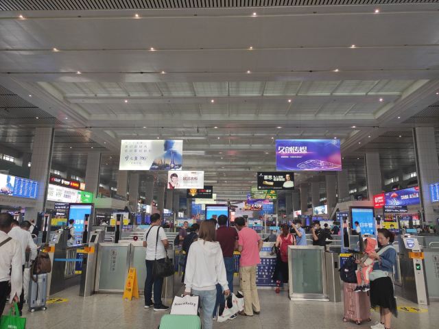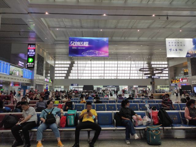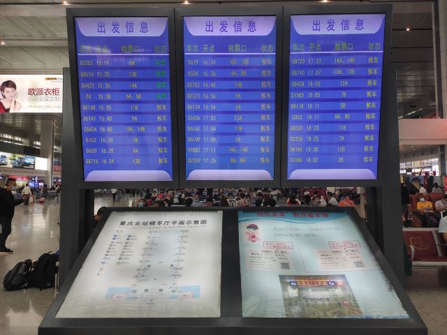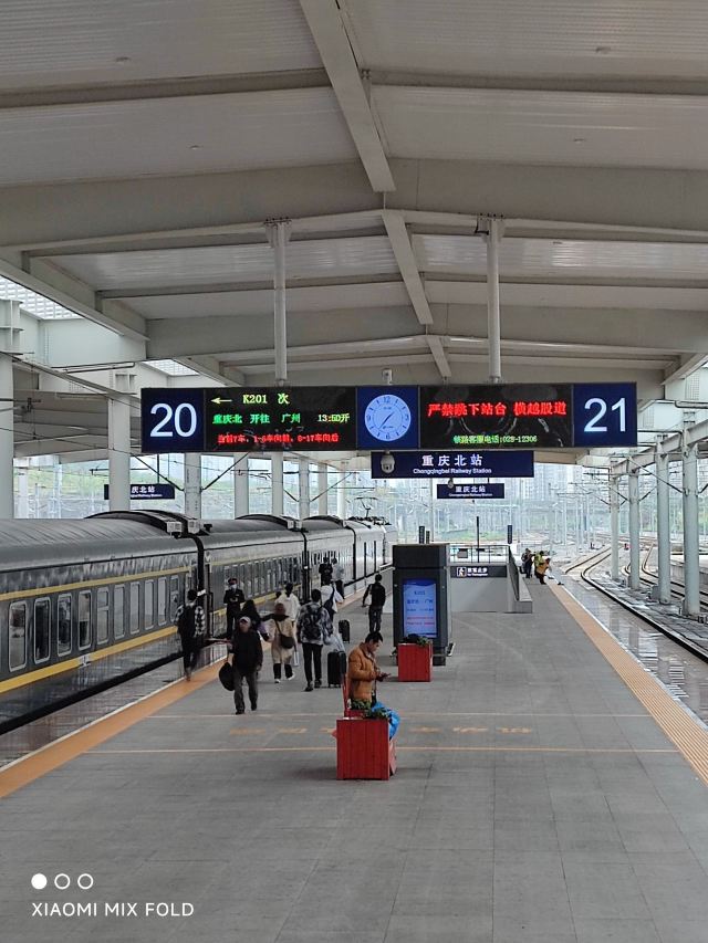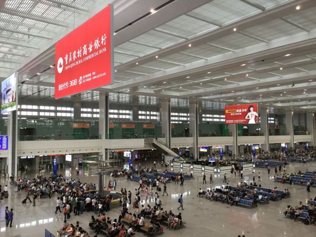 5分 超棒乘轨道交通10号线到达重庆重庆北站南广场,乘火车去武隆。在重庆北站南广场下地铁后通过敞亮的大厅,乘扶梯上到达一层候车大厅,候车大厅宽敞明亮。重庆北站位于重庆市渝北区, 现在是特等站,是中国主要铁路枢纽之一,是集铁路、轨道交通、长途汽车、公交等多种交通方式于一体的综合交通枢纽。重庆北站给我最深刻的印象是,作为特等站、中国主要铁路枢纽之一,没有拥挤的乱象。多年以前在重庆乘火车大多在位于菜园坝的重庆站上下火车。回想起第一次来在重庆北站下火车还是1986年。火车到达重庆北站时已经是夜里,站台低矮,远处探照灯明晃晃的,但站台四周黑漆漆的,列车员拿着手电筒给下车的旅客照亮,在昏暗的的灯光下低矮的站房,也没有检票口。在远处传来阵阵的汽笛声中,乘车沿着崎岖的山路,来到重庆市内。