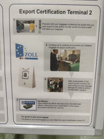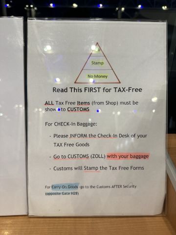 另外很诡异的是,慕尼黑机场内的商品标价为含税价,满50欧以上需要退税的话需要去海关处盖章并回到购物的品牌店直接退税到现金或者信用卡。