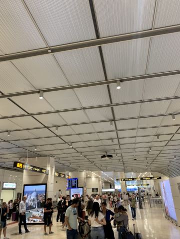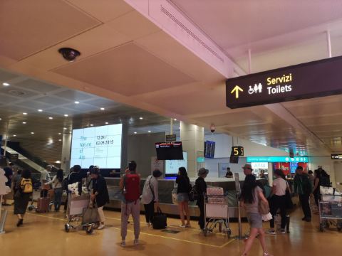 威尼斯是这次欧盟入境的第一站,终于见识到了意大利人的办事风格——拖沓迟缓,却又煞有介事。到达海关的时候,前面一个航班的乘客还在排队,我们一到,海关大厅(其实不算太大)就被挤得水泄不通。有些区域没有空调,那温度,那味道,真是不可描述,一言难尽。于是,我们就在这样的环境里排了两个多小时的队,才终于过关。海关窗口后的几位倒是五官端正、仪表堂堂,就是问题多、英语差、交流很不顺畅,于是乘客的过关时间硬是被拖得山高水长……
