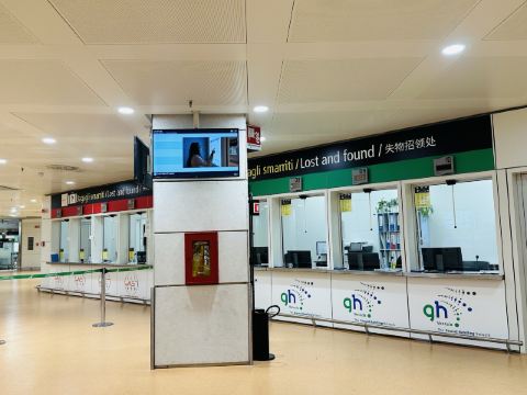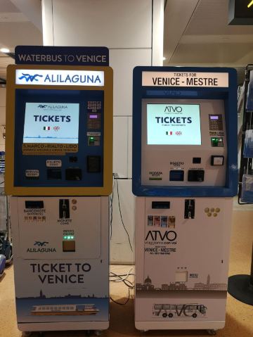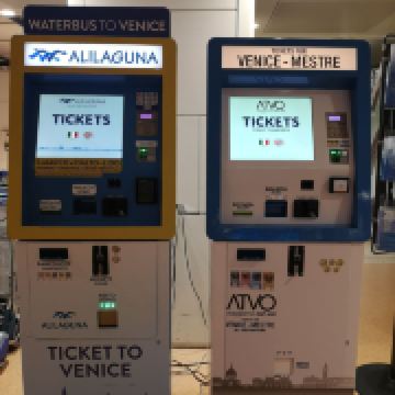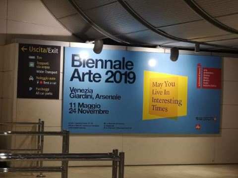威尼斯机场的规模不算太大,但整体规整大气。提款机、公共交通售票机、货币兑换等都是一应俱全。而且还看到了不少双年展的海报,真是让人期待。机场的指示牌上有中文,是仅有的三种语言之一(意大利语、英语和中文)。整体翻译还是很到位,除了那个“宪兵”有点让人摸不着头脑。这也从侧面体现了机场方对日益增多的中国游客的一种积极反应吧。