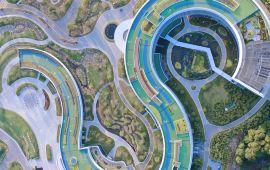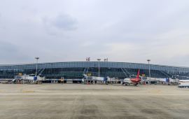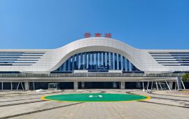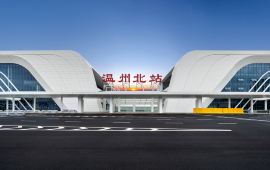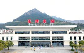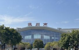 乐清站位于浙江省温州市乐清市,站场规模为3台6线,站房总建筑面积17000平方米,主体建筑地上二层,建筑高度35米。车站整体造型以雁荡山“花春鸟山”之美名为主体,采用硬朗的线条配合柔和的曲线勾勒出端庄不失柔美的形象,融合中雁荡山的巍峨伟岸中不失温柔妩媚之景,打造了乐清站山峙渊渟、秀外慧中的整体形象。站在候车室内大玻璃幕墙前环顾四周,三面环山、玉甑主峰横卧面前、两条溪水在车站两端穿流而过,车站与山、睡景色完美融合。