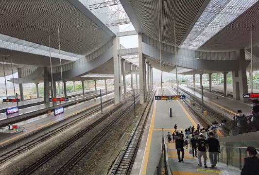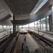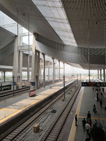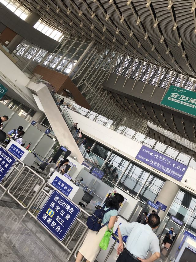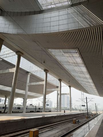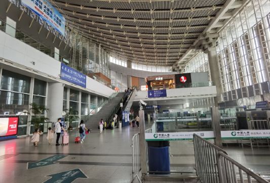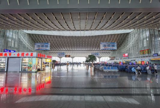 厦门北站,又称厦门新站,站址在厦门市集美区后溪镇岩内村,西北是后溪生活区,南面是大学园区,具有浓厚的文化底蕴。厦门北站是福厦高铁沿线最大的铁路客站之一,建筑带有鲜明的闽南风格。整个站房布局采用“上进下出”格局,分为站层、站台层、高架层三个层面,与机场楼上出发层、楼下到达层的进出模式类似,出发的旅客可通过高架车道直接抵达二楼的“出发层”,即高架层候车大厅。