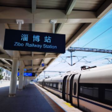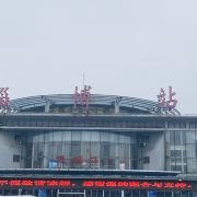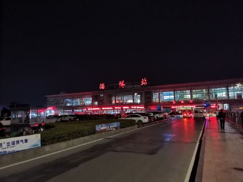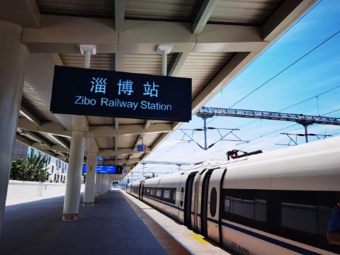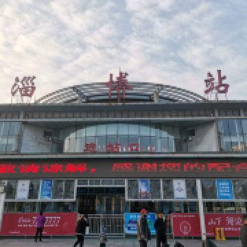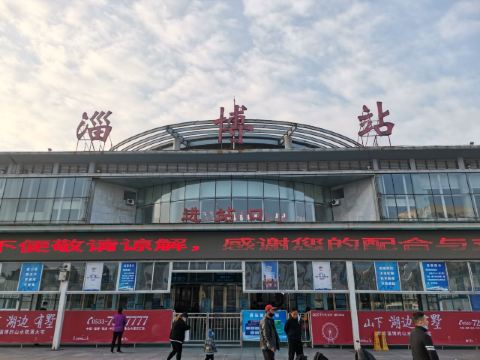 淄博站,原名张店站,站址在山东省淄博市张店区,建于1903年。 离济南站110公里,离青岛站283公里,隶属济南铁路局管辖。现为一等站。改扩建的淄博火车站新候车楼于2005年1月18日正式投入使用,成为百年胶济线上一道靓丽风景。火车站外墙的玻璃幕墙,显出通透、开放的建筑风格。站前广场上矗立着的“齐”字巨型雕塑,更让人联想到这里悠久的历史文化。