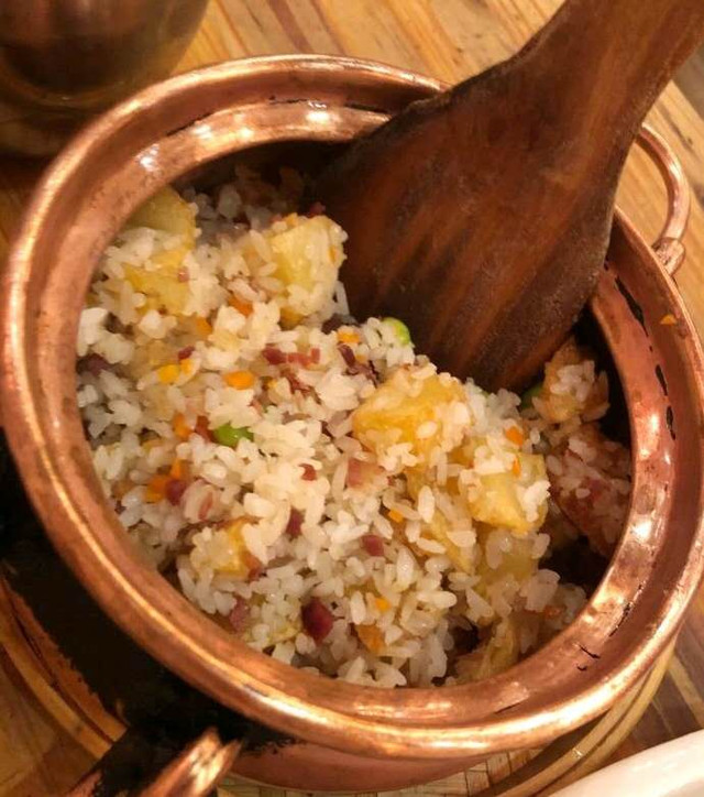 这顿饭我来云南吃过最满的一顿饭。[薄荷]环境:餐厅环境不错,晚上用餐还能听到对面餐厅的歌声,椅子的款式让人觉得用餐空间比较紧凑。[服务铃]服务:服务比较周到,会告知客人菜的口味给客人选择,也会告诉客人上菜时间。东巴烤鱼味道很好,用料也足,鱼烤的也很入味。水性杨花这个菜的口感软软的,入口比较滑,很特别的青菜。铁板包浆豆腐云南的包浆豆腐我没有尝过,底部煎的脆脆的,我比较喜欢招牌小锅饭饭的味道不错,有锅巴饭的口感,里面有土豆、青豆、培根、胡萝卜,推荐~