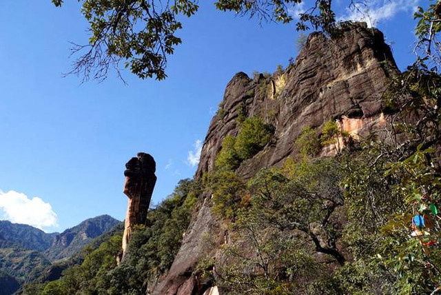 千龟山是典型的丹霞地貌,也是国家地质公园。这红色的岩石像乌龟壳一样盘踞在山里。 情人柱 留言牌