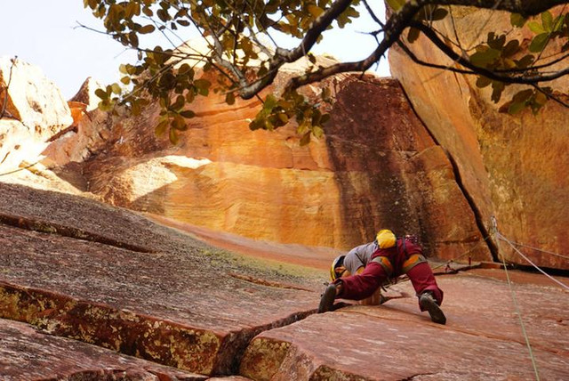 老君山离丽江有3.5小时的车程,路倒挺好走,沿路经过石鼓镇。 走进老君山,到处是蓝天白云。 此行先参观了传统攀岩岩壁。传统攀岩的意思大概就是比较原始的岩壁吧,天然已形成了一些抓点。据说这里的岩壁是中国比较大的,也是圈内小有名气的。岩壁下聚集了一些爱好者们在做交流。 攀岩爱好者在交流 仰望岩壁 往上看,岩石还能呈现不同的颜色,好像彩虹。攀岩的人们被比喻为岩壁上的舞者。