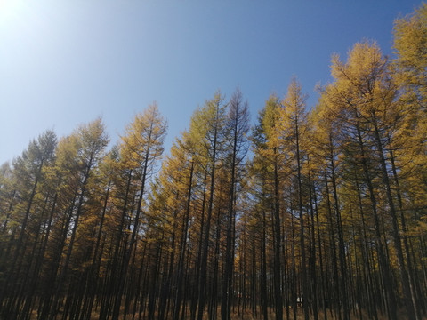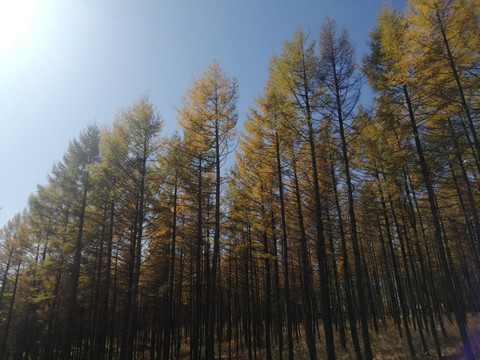 塞罕坝森林公园是林的海洋,公园内有林地面积110万亩。森林主要以落叶松、樟子松和云杉为主,还有白桦、山杨、柞树、五角枫等。其中著名的白桦林就位于塞罕塔的西边,这里有成片的的白桦树,银白色的挺拔树干、遮天蔽日的树叶,秋季时来观赏是最佳时间,金黄色的落叶与苍茫的枝干,营造出壮阔之美,是摄影爱好者们的取景基地。
