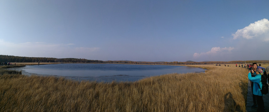 在群山环抱的100万平方米的湿地范围内,分布着大小不等、形状各异的七个天然湖泊,空中俯瞰形如天上的北斗七星,七星湖因此而得名。据中国林科院专家考证,塞罕坝林场的湿地资源十分丰富且具有独特的保护和观赏价值。尤其在1500米海拔左右的塞罕坝湿地,属于独特的高寒河源湿地类型,植物群落非常丰富,有水生植物群落、沼泽植物群落、草甸植物群落,还有森林植物群落和草原植物群落,具有完整的水生生态序列、集森林、草原、草甸、沼泽和水体为一体,再加上广泛分布的重要观赏植物——假鼠妇草、萍蓬草、荇菜、睡菜、金莲花、狼毒花等。据资料记载,假鼠妇草湿地常见于海拔3000米的地方,在海拔1500米的地域实属罕见,极具科考和观赏价值。塞罕坝七星湖湿地就是典型代表之一。七星湖在当地称为活泡子。因为这里水草丰美,野花遍地的水草滩,是活动的浮层,其底层仍是湖水,且整个大湖面相连,所以大大小小七个湖面实际上是一个相联的流动整体。