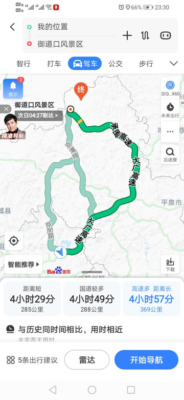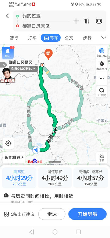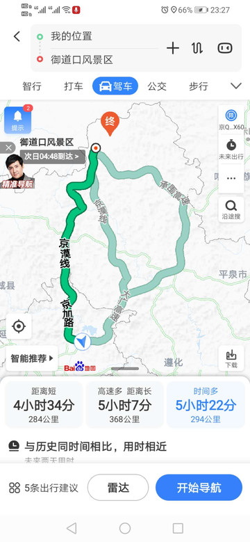 我统计了以下,从北京到御道口主要有3条路。