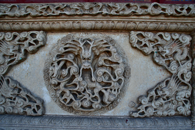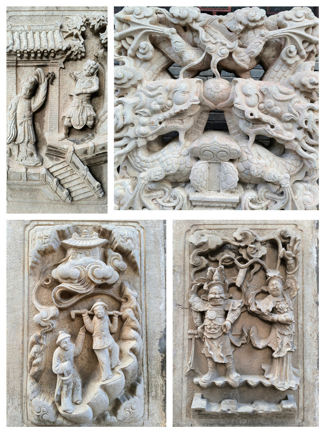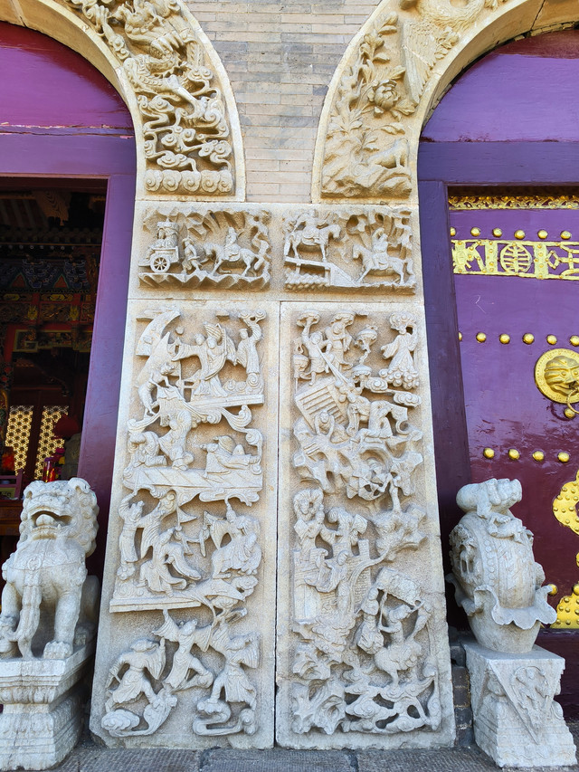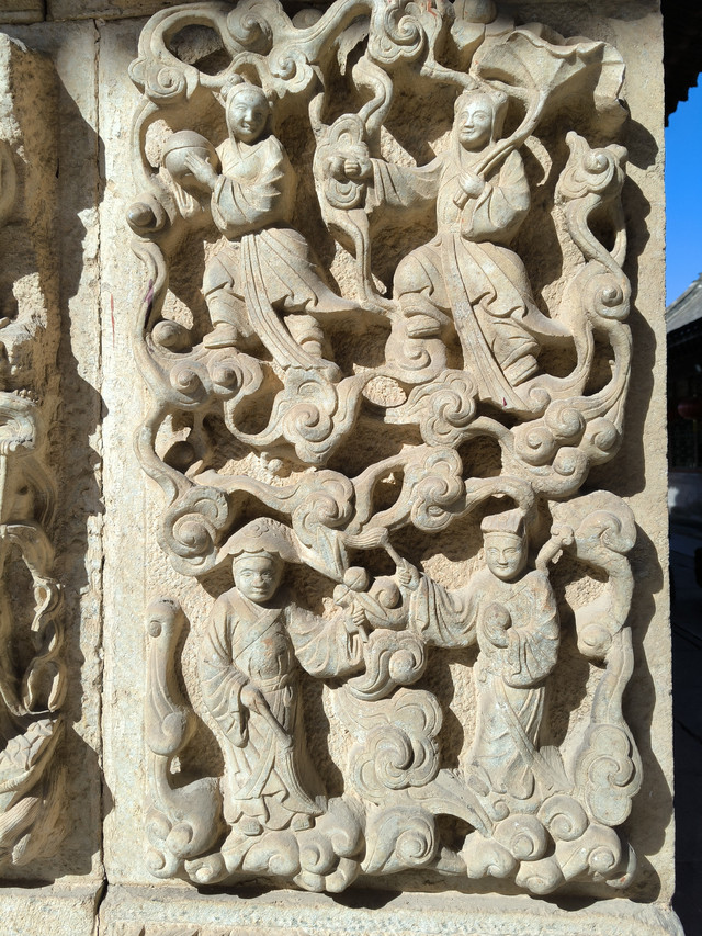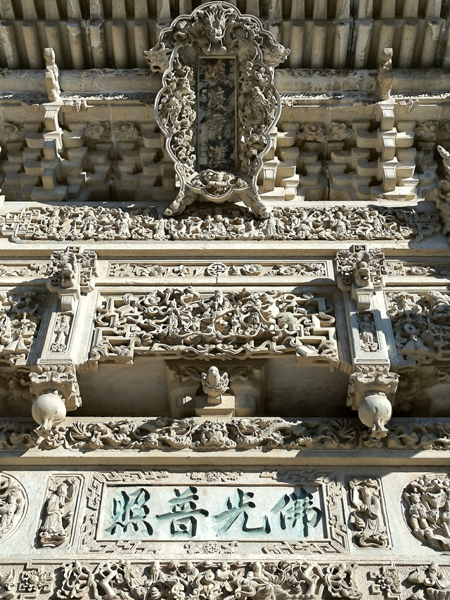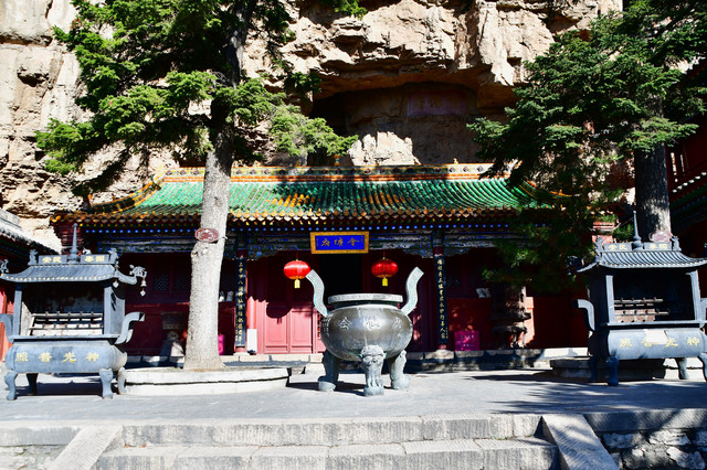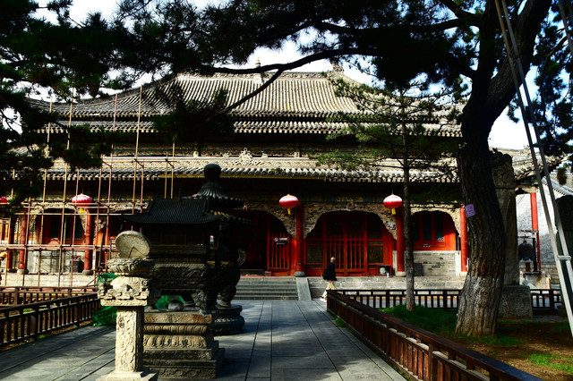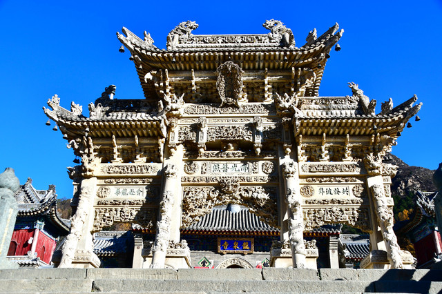 佑国寺:这里可说是石雕的海洋,几乎是无石不雕。一进院共有石刻图案316幅,以"穆桂英挂帅"、"天女散花"、"苏武牧羊"等最为人们熟悉;二进院共有360幅,有"孟母择邻"、"太公钓鱼"的故事等;三进院共294幅,有"三顾茅庐"、"孙悟空、猪八戒登仙山"等情景。整个佑国寺石刻图案近千幅,内容之丰,数量之多,刻工之精,堪称全山一绝。