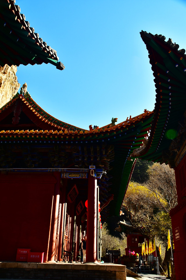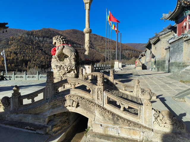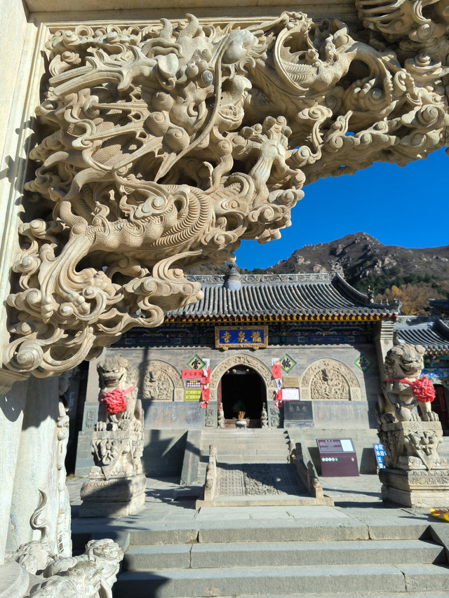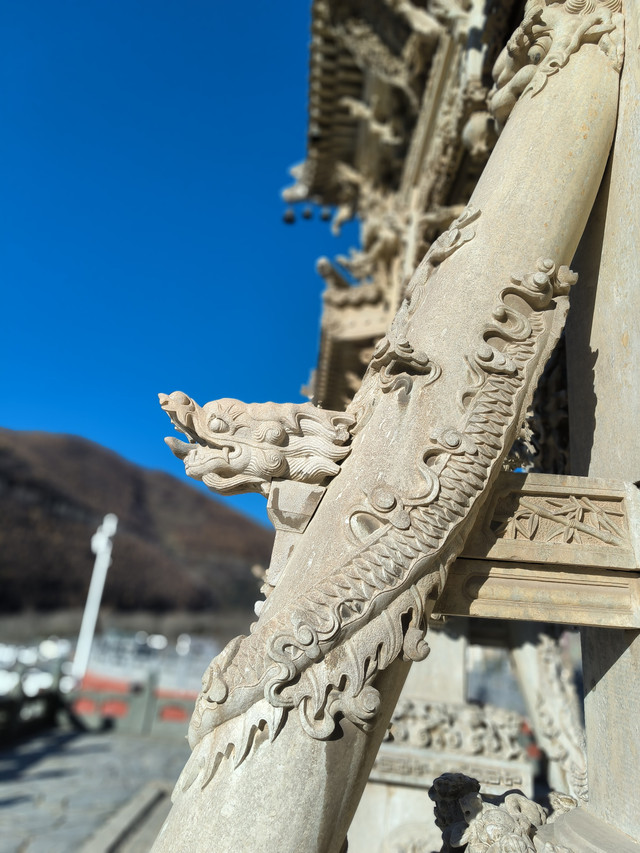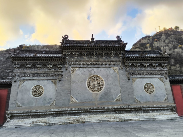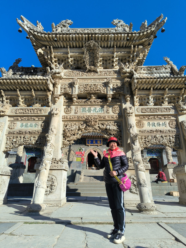 20241023,天气晴朗,第一个景点是龙泉寺。龙泉寺位于五台山台怀镇南5公里九龙岗山腰,故又俗名九龙岗。龙泉寺原为杨家龙泉寺将家庙,寺旁有泉曰龙泉,寺由此而得名。 始建于宋代,民国初期重建,占地15950平方米,殿堂僧舍165间。现存影壁,台级,牌坊和三座院落。龙泉寺之最:石雕建筑最多、最繁、最佳。寺中有三件艺术瑰宝:影壁、牌坊、墓塔。(免门票)