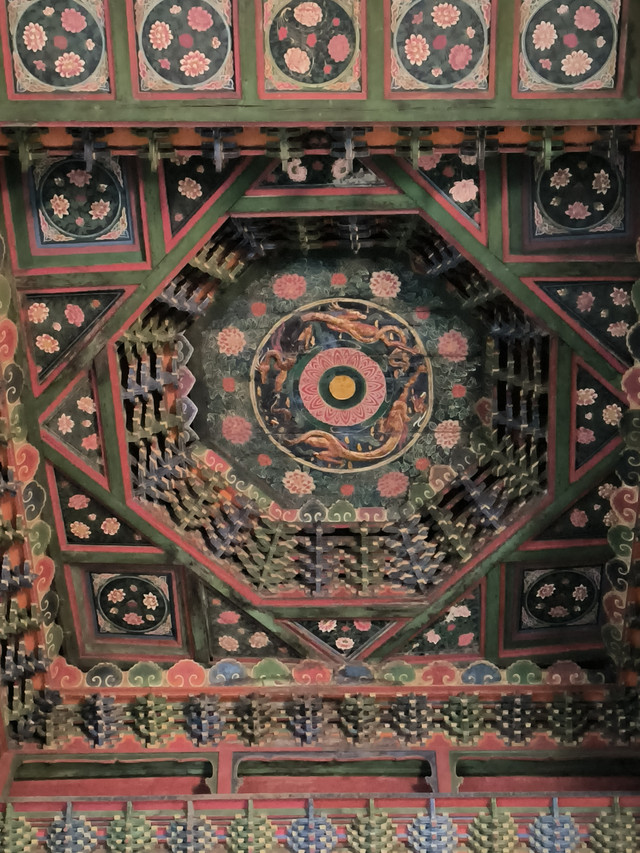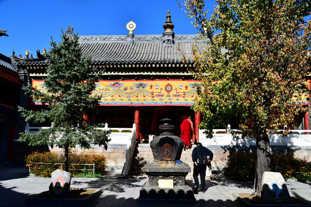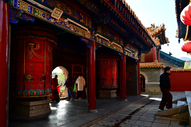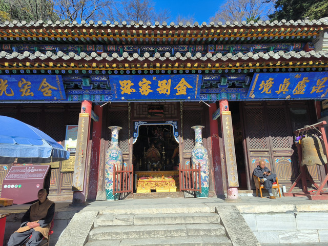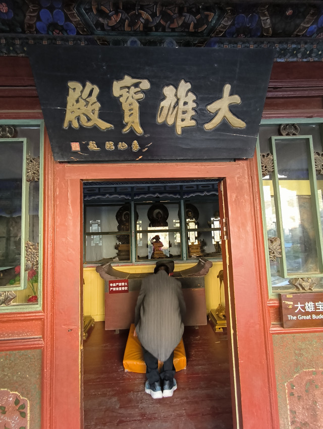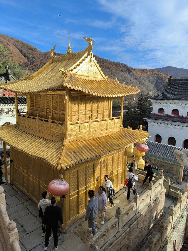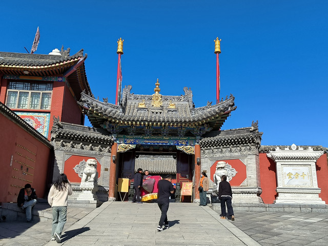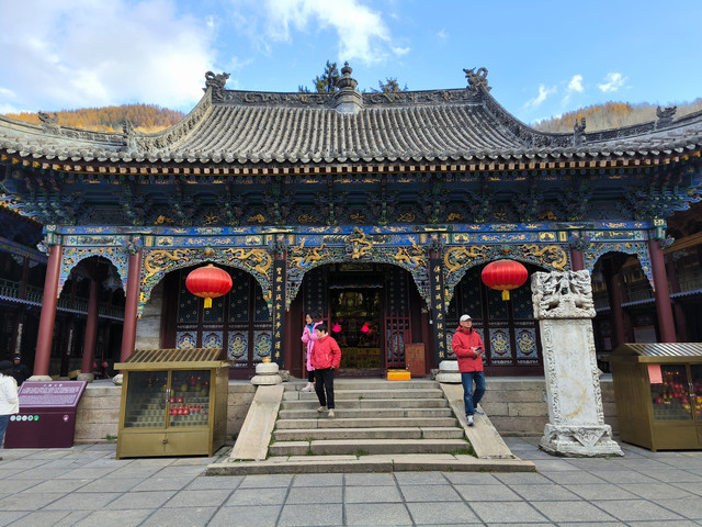 20241022,天气晴朗,中午来到菩萨顶,菩萨顶位于山西省五台山台怀镇的灵鹫峰上,海拔1797米,是五台山十座黄庙(喇嘛庙)中的首庙。萨顶是满族语言的叫法,意思是文殊菩萨居住的地方,又名大文殊寺,是五台山著名的五大禅处之一。菩萨顶现在占地面积45亩,有殿堂僧舍等大小房屋430多间,布局结构紧凑而有变化。现存建筑多建于清代,建筑形制、手法及雕刻艺术,多参照皇宫。这里是每年农历六月初四到六月十五的黄教法会主场地,游客可以看到喇嘛们“镇魔”的盛况。(进入菩萨顶要购门票,全票价10元,60岁以上免票)