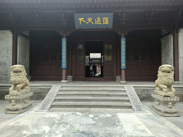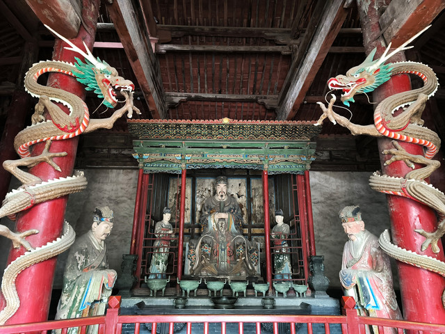 浑源文庙位于浑源县城内永安西街北侧。坐北向南,南北长140米,东西宽80米,占地面积15586平方米。据清乾隆版《州志》记载,文庙始建于辽,历代均有增葺,现存建筑为明清遗构。浑源文庙沿中轴线自南至北依次是大成坊、泮池泮桥、戟门、大成殿、明伦堂、敬一亭、尊经阁、崇圣祠,两侧有东西廊庑等。大成殿面宽五间,进深三间,单檐庑殿顶,檐下施三踩单昂斗栱,前后檐均施平身科两攒,角科有鸳鸯交手栱。为扩大殿内空间,采用了减柱造和移柱造,梁架为六架梁对单步梁。浑源文庙格局完整,规模宏大,大成殿保留有金元时期的构造特征。文庙不大,15分钟左右基本上就能游览完毕。(免票)