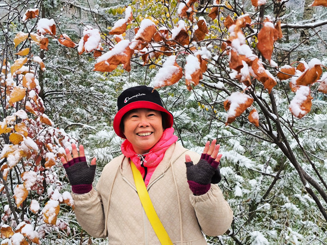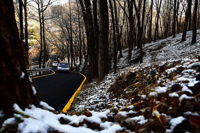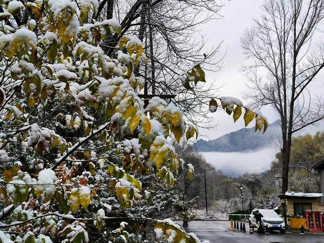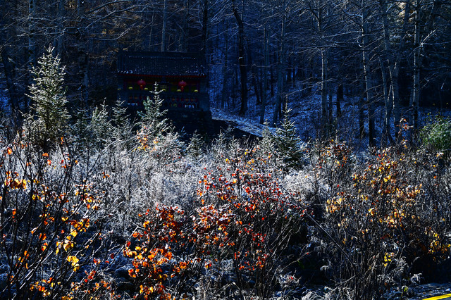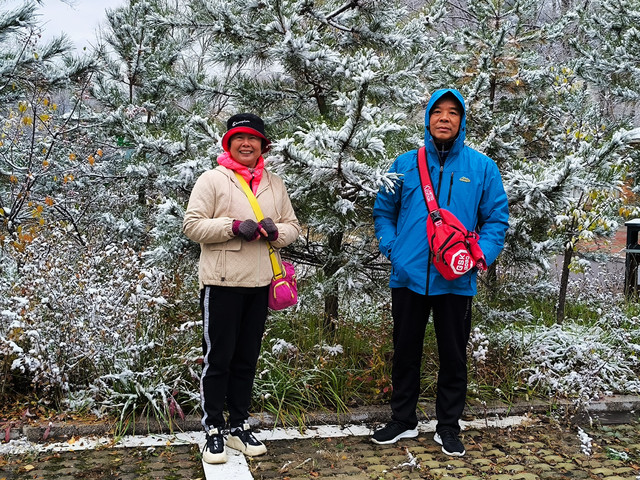 我们是10月20日下午到达五台山的,在五台山游玩了三天,23日下午才离开。初到五台山遇到了下雪天,可把我们这两个小老广乐坏了,皑皑的白雪映衬着古朴的台怀镇,银装素裹,于是,第二天早早起床,徒步2.1公里,一边赏雪景,一边上南山寺,抓紧时间拍雪景。可惜第二天太阳出来就把雪融化了,我们还没有玩够呀!