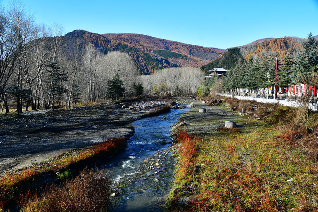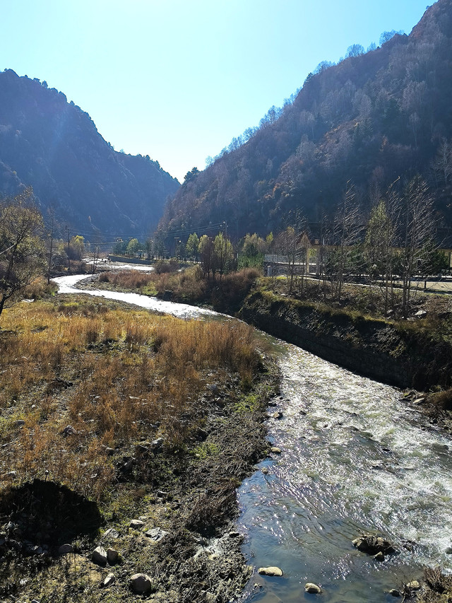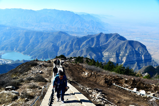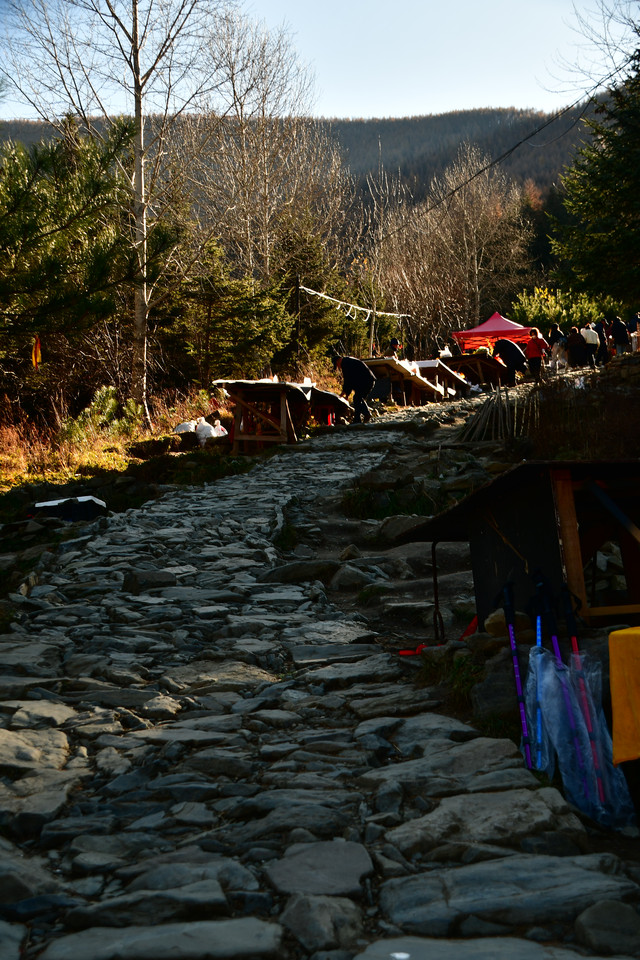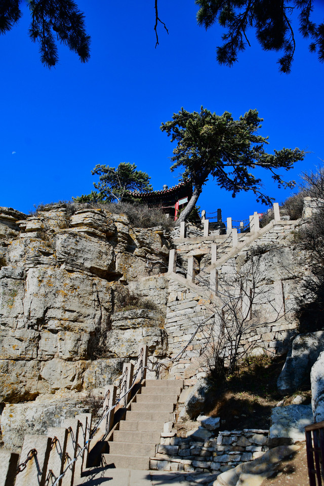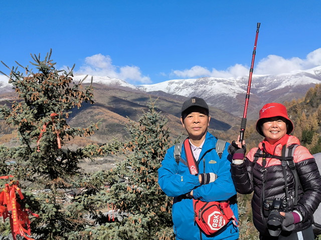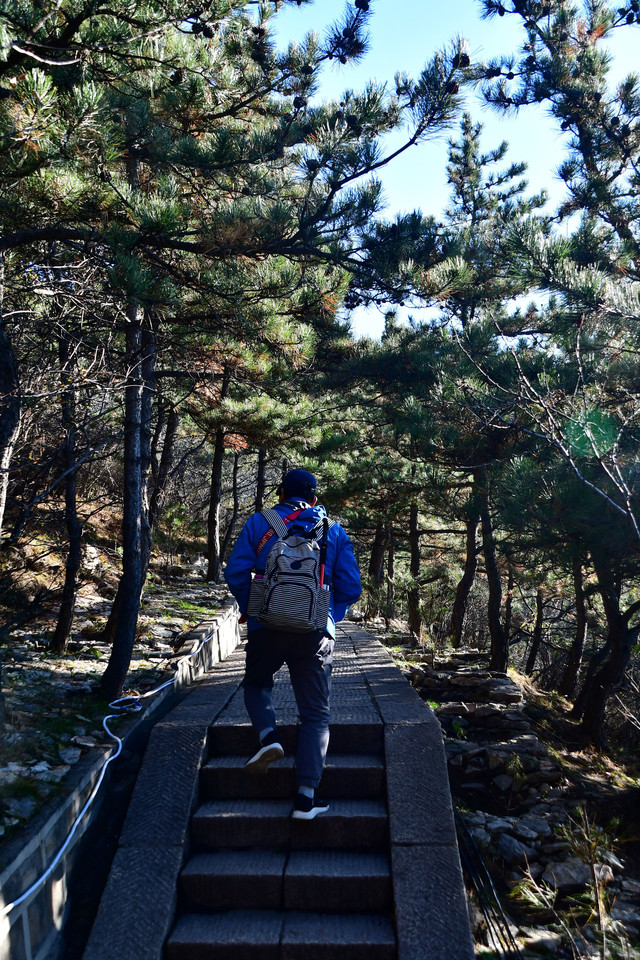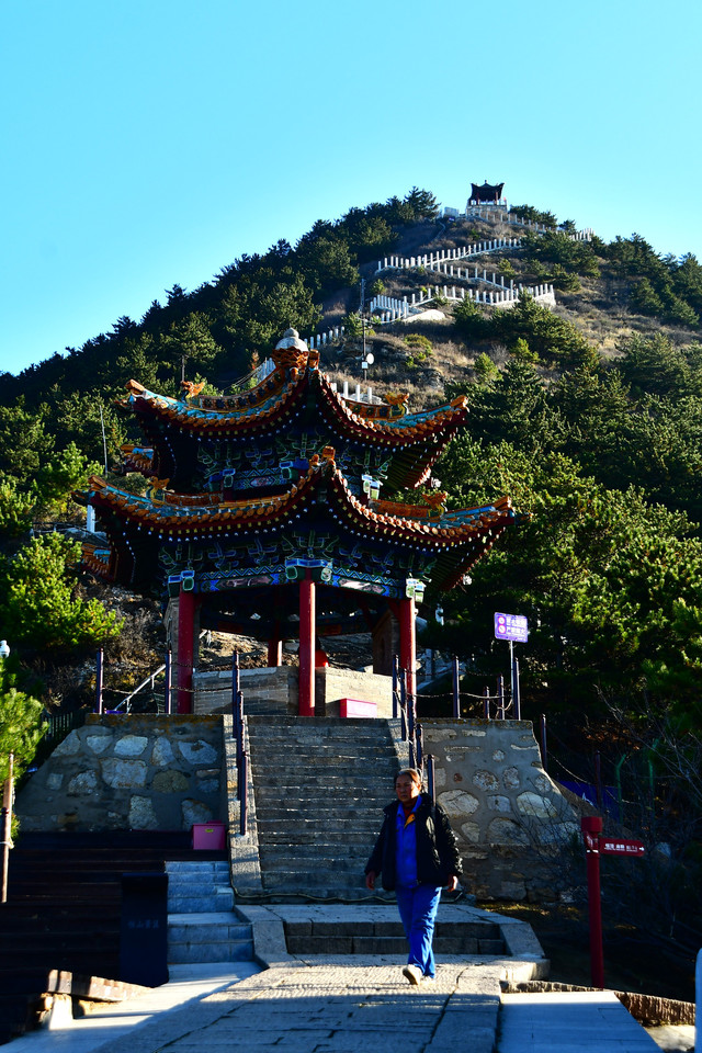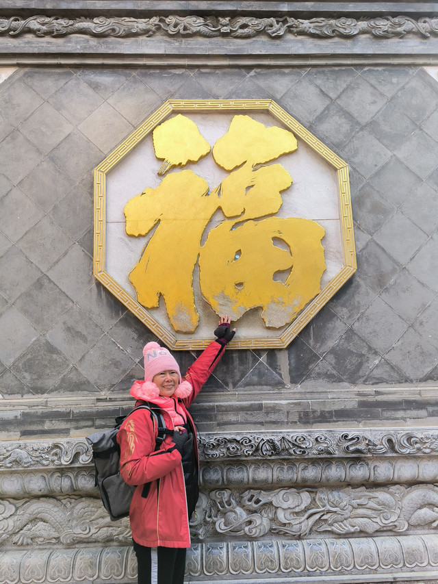 20241022,天气晴朗,一大早我们便搭乘景区交通车来到清水河畔的黛螺顶山脚。黛螺顶,原名叫青峰,创建于明代成化年间,明朝时期又称大螺顶,直到乾隆十五年间被改名为黛螺顶,一直延续到现在,是五台山历史悠久,闻名遐迩,别具一格的一座古刹。黛螺顶又称“小朝台”,是台怀寺庙中最高之处。黛螺顶所处的山峰,是五台山东台顶延伸过来的一座小山,海拔高度1938米。因台怀镇海拔1700米,黛螺顶的垂直高度只有不到300米。但站在清水河谷仰望,那坐落于高处与该山峰同名的黛螺顶古刹,相当于一幢130多层高的摩天大厦,要想登顶,绝非易事,通往黛螺顶有三个方案可以选择,1、可以骑马或步行,2、坐索道,3、登1080级台阶的“大智路”。因为索道停止使用,登1080级台阶太费体力,我们选择沿着马道步行,攀登起来没有那么费劲,我们边走边拍照边休息,用了一个多小时才到达黛螺顶。沿途一步一景,风光无限:阳光明媚,蓝蓝的天空、皑皑的台顶、金灿灿的树木、红墙金顶的寺庙。。。组成了一幅幅五台山初冬的美丽画卷,五台山真美呀!(门票8元,60岁以上免票)