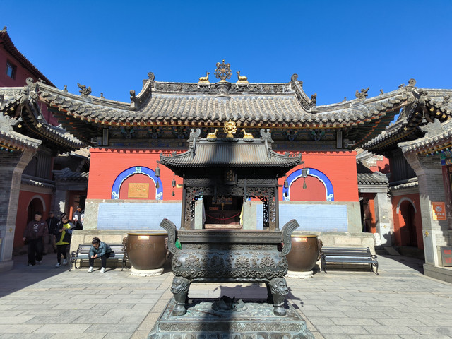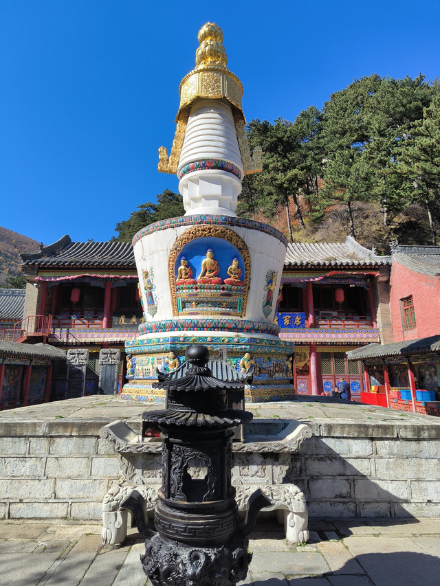 五台山门票:全价票135元/人,60岁以上免票,景区内交通车车次很密集,免费乘坐,出行非常便利。在三天的时间里,我们游览了南山寺、广仁寺、罗睺寺、显通寺、五爷庙、黛螺顶、菩萨顶、广宗寺、殊像寺、普化禅寺、龙泉寺、明月池、镇海寺。