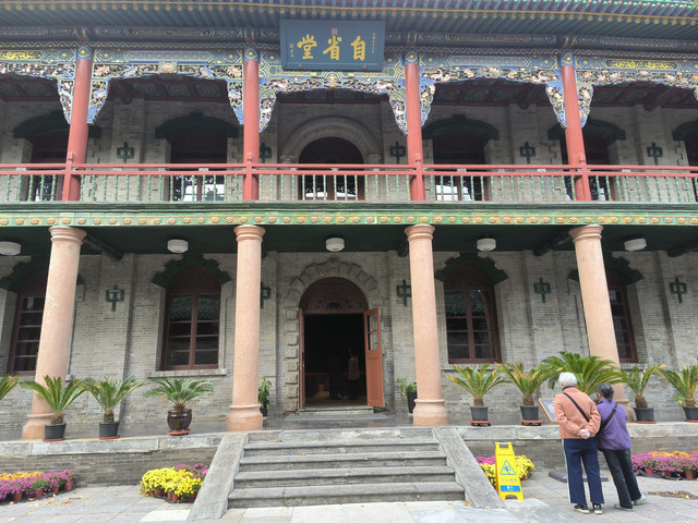 小自省堂,时称礼堂,又称梅山会议厅,位于督军府旧址后院北侧,始建于民国七年(1918年),“自省堂”三字由徐世昌题写 (《中国考古集成》记载小自省堂的“自省堂”三字是康有为题写 )。小自省堂建筑风格为西式结构、中式装饰,是一座融合中西建筑特色的现代建筑物。建筑建于石质基础上,面宽9间,进深8间,平面呈“工”字形布置,前后檐7间均为上下两层檐廊,侧面入口布置有西洋式倚门、尖拱窗。两山墙上下设有对称的狭长的窗户。屋顶为传统的卷棚歇山式,四角各建一座单层四角攒尖式角楼,琉璃瓦顶。厅内部四周建有二层木构围廊,厅堂内具有宽阔的空间。