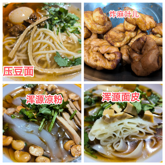 浑源的特色小吃是浑源凉粉,是以土豆淀粉、豆腐干、蚕豆为原料制作而成,浑源凉粉清亮、滑嫩、爽口,像猪皮冻似的“筋颤”。风味独特,堪称北岳一绝。