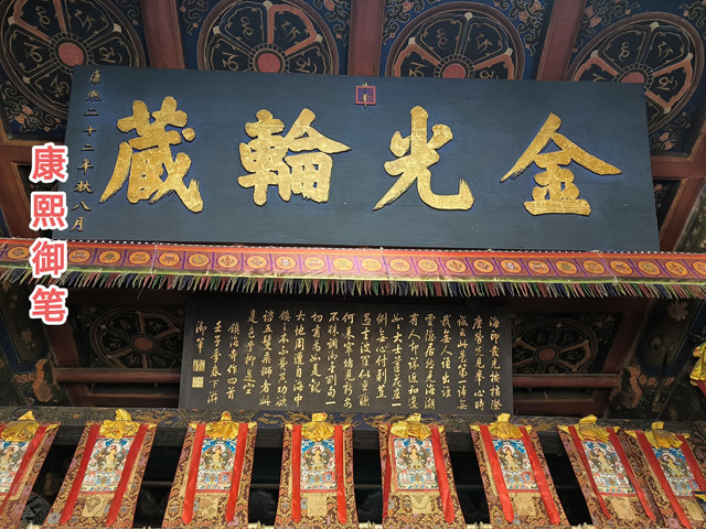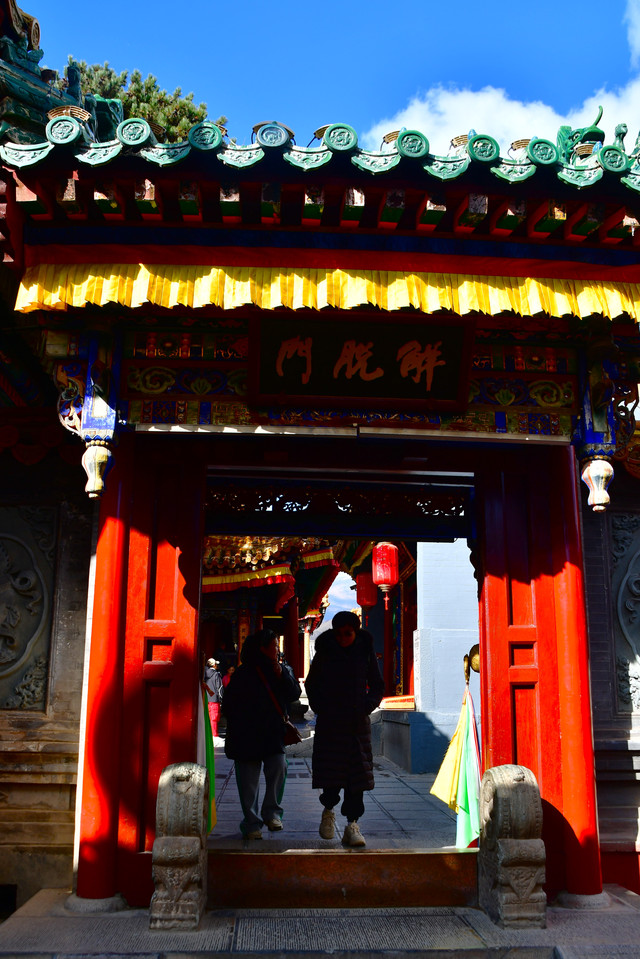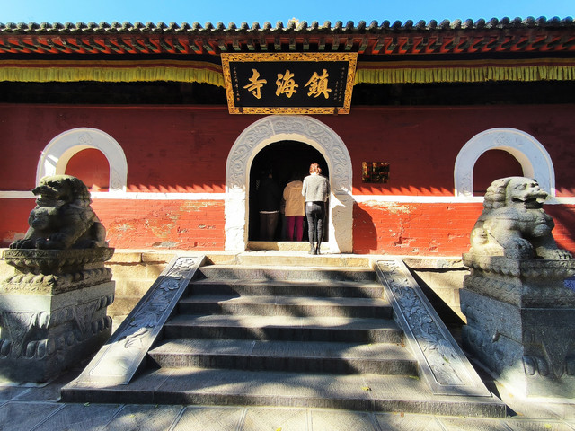 镇海寺,始建于明代,占地1620平方米,平分为前院、后院、南院三部分,共有各种建筑100余间。现仅存有四座大殿,分别是天王殿、大雄宝殿、观音殿和关公殿。因寺旁海底泉上建有镇海塔而得名,明成化年间,铁林果禅师隐修于此,镇海寺由此转盛,清代至民国时期是章嘉活佛的住地,现为藏传佛教格鲁派寺院。清代在康熙、乾隆、嘉庆诸帝护持下,成为举足轻重的皇家到场。康熙二十二年、二十八年,清圣祖玄烨分赐镇海寺 “金光轮藏”“香客慈云”两块牌匾;康熙四十九年,玄烨又敕提五台山番汉扎萨克大喇嘛鼎增坚错,重葺扩建殿宇房舍。清高宗弘历六次巡礼五台山,多次驻跸、礼佛于镇海寺。 传说镇海寺是顺治皇帝在五台山出家的地方,寺庙右侧的“龙门”,因当年康熙皇帝寻父走过而得名。平时这里大门紧闭,只有皇帝才可以进出,据说自清康熙帝以来,龙门只打开过四次。(免门票)