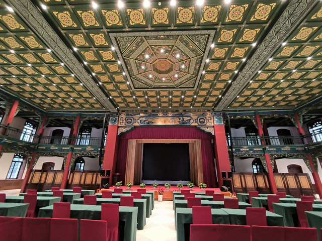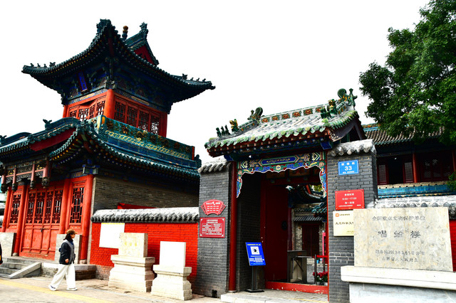 唱经楼坐落于太原市中心的鼓楼街中段,是明清时期科举文化遗存中为数不多的一处宣唱金榜之所,亦是太原市“科举文化博物馆”。一个巴掌大的小景点,游人甚少,但是其来头不小:是第七批全国重点文物保护单位。唱经楼是明朝以来科举考试宣唱考生客次的地方。现存建筑以唱经楼为主,由正殿、春秋楼、通廊相结合,平面布局呈"工"字形。唱经楼坐北朝南,为明代所建,由长廊与大堂相连,为两层木结构建筑,十字歇山顶,殿顶孔雀蓝琉璃剪边,一层面阔、进深各三间,南向明间设卷棚抱厦;二层面阔三间,进深一间,重檐设平座,檐下施双翘五踩斗栱。春秋阁为二层建筑,一层为三间窑洞式,二层为木结构前插廊悬山顶。正殿面阔三间,进深二间,单檐歇山顶,虽经清代重建,主体风格仍保留明代特色。(免门票)
