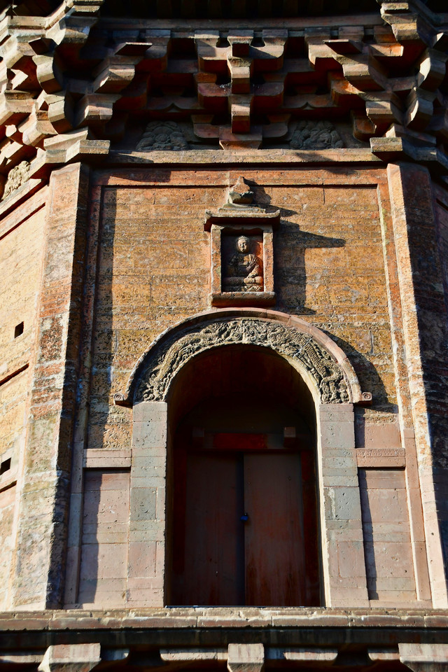 除第一层外,其余各层均无梯级可攀登。第一层四面辟门,唯正南为真门,其他三门均为假门,这三个假门,有的半开,有的虚掩,有的紧闭,设计独具匠心,使你真假难分,以假乱真。