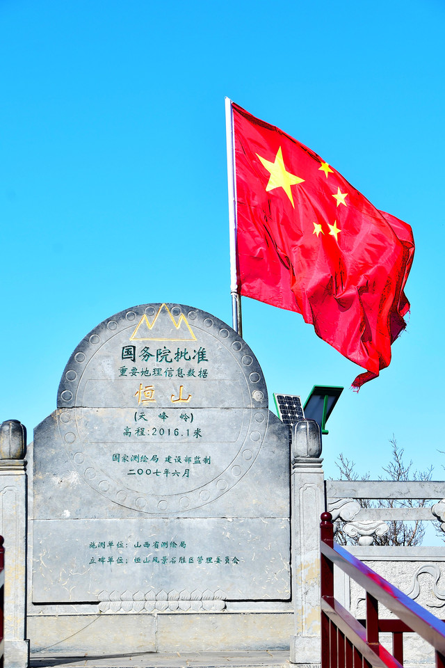 恒山是历次地壳升降运动形成的一座断层山,岩层为古老的寒武纪奥陶系石灰岩,距今已有五亿年。基岩大面积裸露,风化破碎严重,峰峦均呈尖形,沟谷切割较深,相对高差1000米以上。主峰天峰岭海拔2016.1米,与翠屏峰东西对峙,自古为兵家必争之地。(门票45元,60岁以上免票)